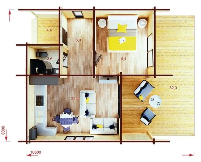 Площадь: 52,8 м